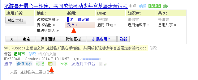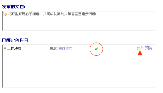 等出现“绿色启用标志”,说明稿件已经发布成功。