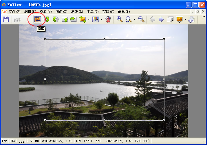 点击【修剪】按钮,完成图片裁切;