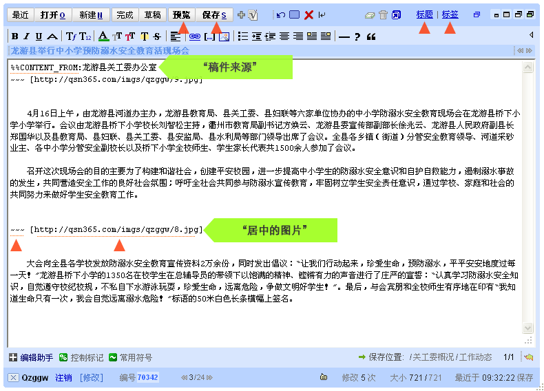 复制粘贴到“稿件编辑器”内适当的位置,即可在发布的稿件上显示这张图片;最好是居中显示。
